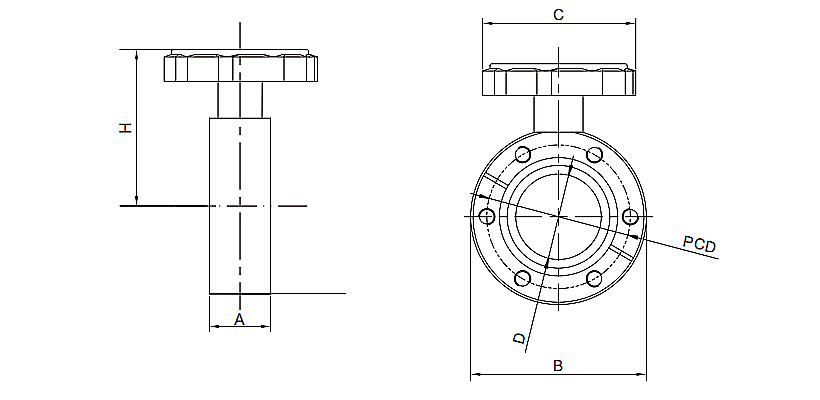 | Model for 304 | Size | A/mm | B/mm | C/mm | D/mm | H/mm | RCD/mm | Bolt Hole | N.W./KG | |