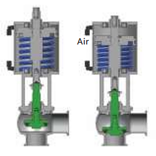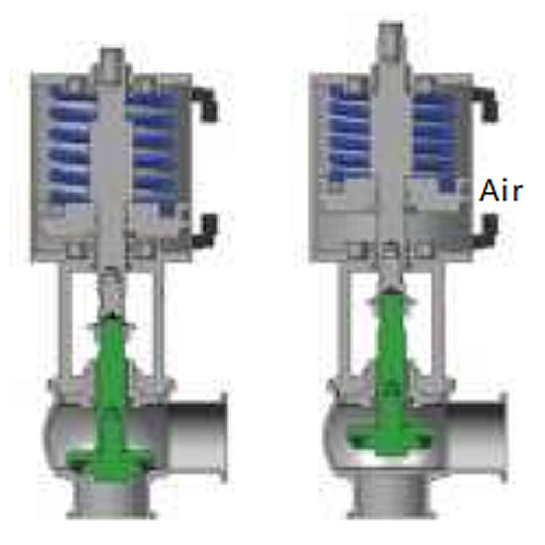 Valve is open, when air is supplied,shaft goes down to close. The builtin spring returns the valve plug toit s open position once the airsupply is stopped |