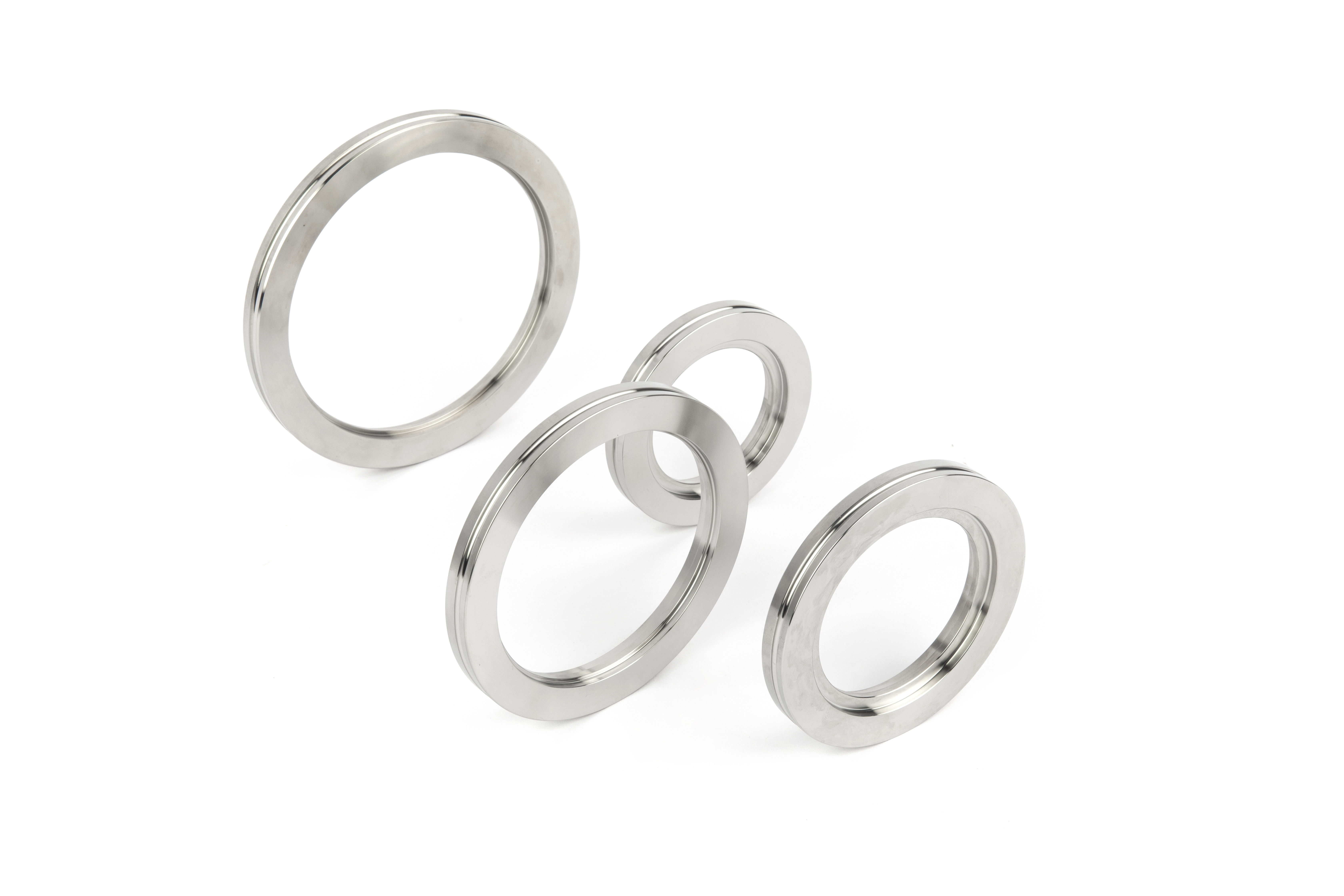 A retainer ring prevents the OF flange from slipping through the bolt ring. Nonrotatable ISO flanges are assembled with bolts.