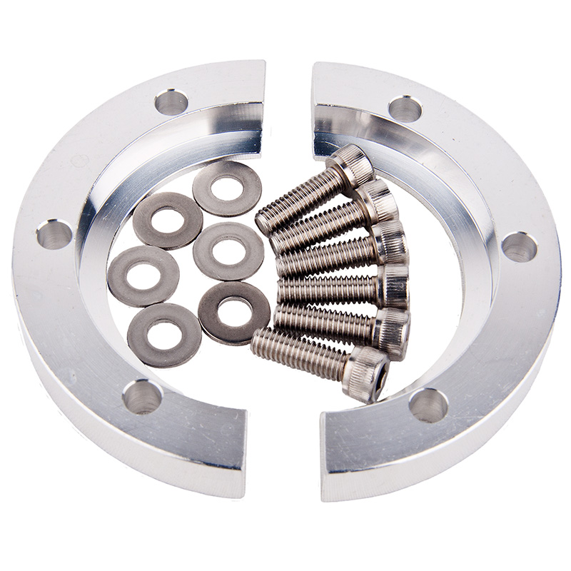 Bulkhead Clamps are used for mating KF flanges to bulkheads. The KF flange is used for through- or foreline vacuum plumbing and for simple HV chamber pots.