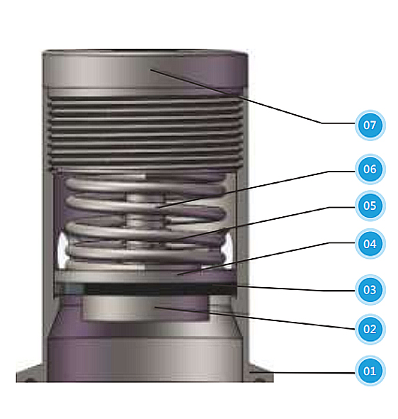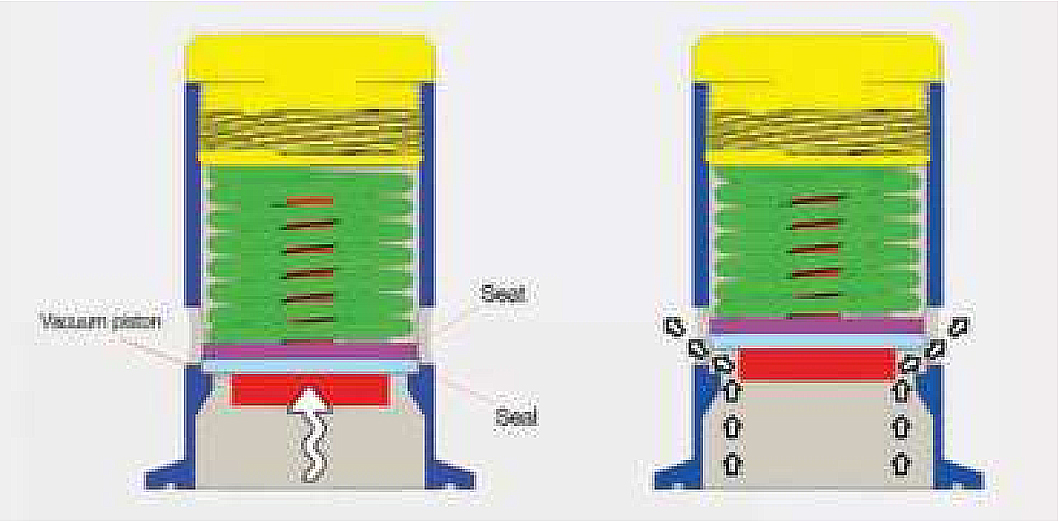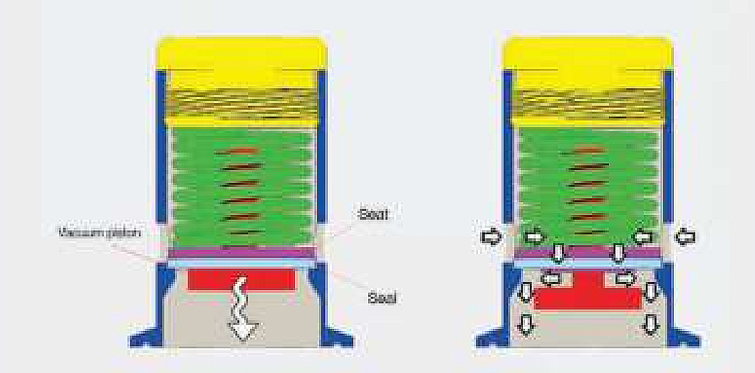 Normally closed,but when there is a vacuum in the tank,the vacuumpiston opens automatically,drawing air into the tank. Thus, keepingpressure balanced inside and outside the tank.