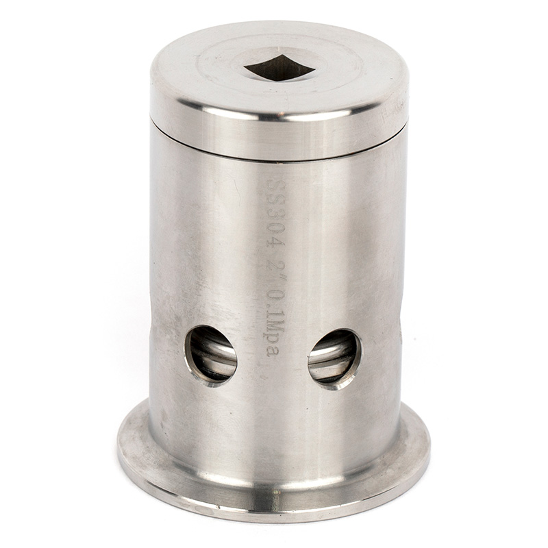 InquireTank Pressure and Vacuum Relief Valve/Vent is designed to protect stainless tank working in safety. From pressure side, whenthe valve is normally closed and tank pressure exceeds the rated pressure on the outside of valve, the valve automaticallyopens and vents alr to atmosphere. From vacuum side, when the valve is normally closed and there is vacuum in tank, thevacuum piston inside the valve opens automatically and draws air into the tank. in retumn, this keeps the pressure inside andoutside the tank balanced.