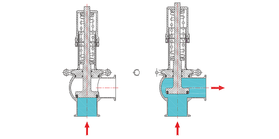 InquireVAP series sanitary stainless steel safety valve, alsoknown as "pressure relief valve", is used to control overpressurization in a process piping system.When the line pressure exceeds the limit set for thesafety valve, the valve plug will lift and release thepressure through the side port. The valve will remainopen until the line pressure decreases to a value lowerthan the set value.