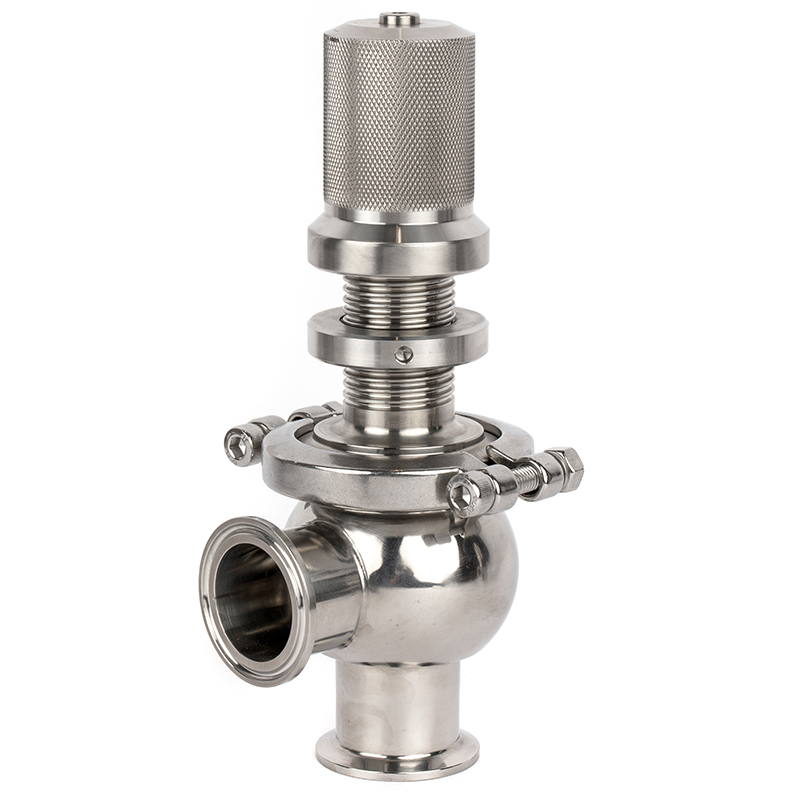 InquireVAS series sanitary stainless steel safety valve, alsoknown as "pressure relief valve", is used to control overpressurization in a process piping system.When the line pressure exceeds the limit set for thesafety valve, the valve plug will lift and release thepressure through the side port. The valve will remainopen until the line pressure decreases to a value lowerthan the set value.