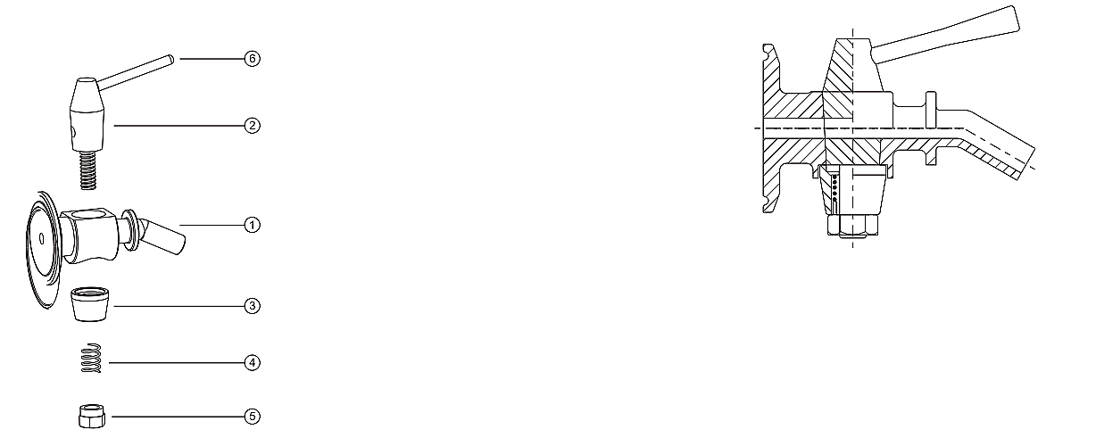 ·VSB Sample Valves for Breweries c/w lip for pigtail hook up