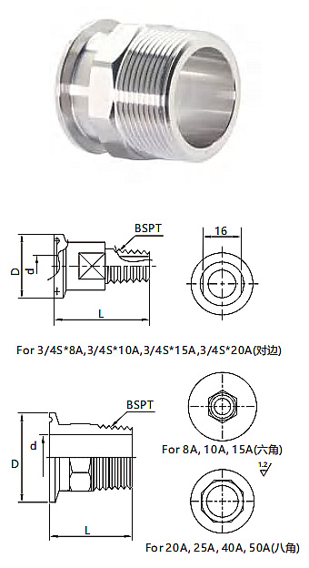 Model for 304 | Size | D/mm | BSPT | d/mm | L/mm | N.W./g |