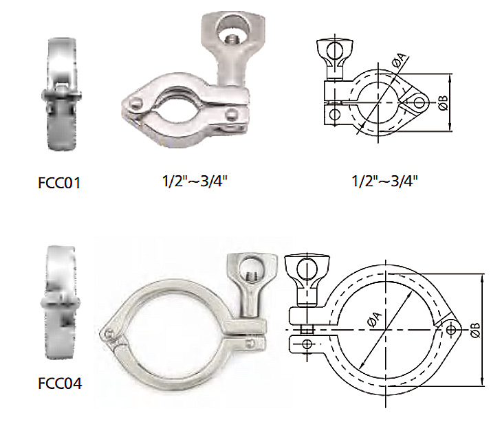 InquireSanitary stainless steel Clamps, the most popular type of fittings used in sanitary processes today. They are designed for fit needs at various circumstances and used with a gasket and two clamp compatible fittings to make a connection.