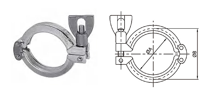 InquireSanitary stainless steel Clamps, the most popular type of fittings used in sanitary processes today. They are designed for fit needs at various circumstances and used with a gasket and two clamp compatible fittings to make a connection.
